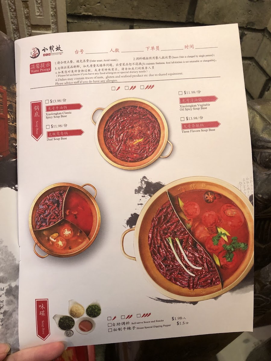 Xiaolongkan Hot Pot Menu